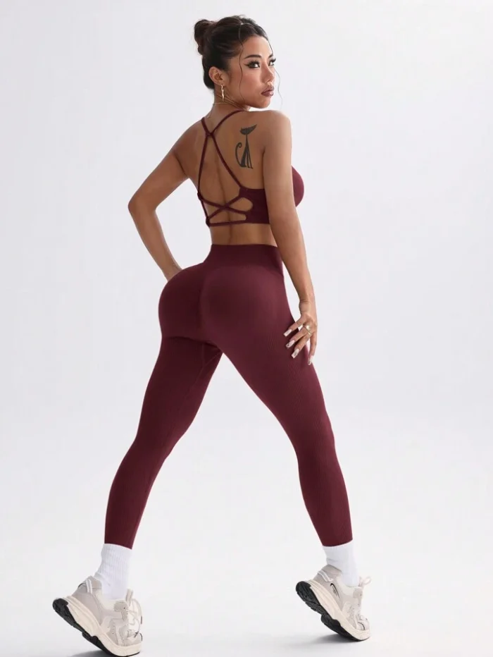 Slay Set – Conjunto Deportivo 2 Piezas para Mujer con Top de Tirantes y Leggings, Diseño con Lazo en Espalda